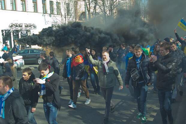(Футбольные фанаты легко превращаются в фанатов майдана. Мозгов-то нет).
